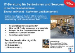Ein kostenloses Angebot der Gemeindebücherei Wörthsee. Beratung zu Fragen rund um Handys, Laptops und Tablets. 5-6 BeraterInnen stehen zur Verfügung.