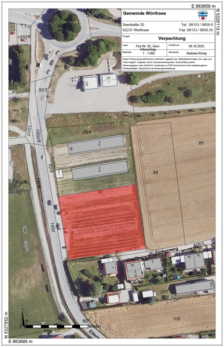 Die Gemeinde Wörthsee beabsichtigt, eine landwirtschaftlich nutzbare Fläche mit einer Größe von ca. 3.200 m² an einen örtlichen Landwirt zu verpachten.