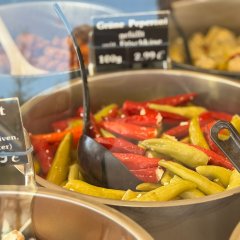 | Sadak Lilifer Olivenhandel-Feinkost: Oliven, eingelegtes Gemüse und Auftriche, Baklava, Pide und Blätterteiggebäck |